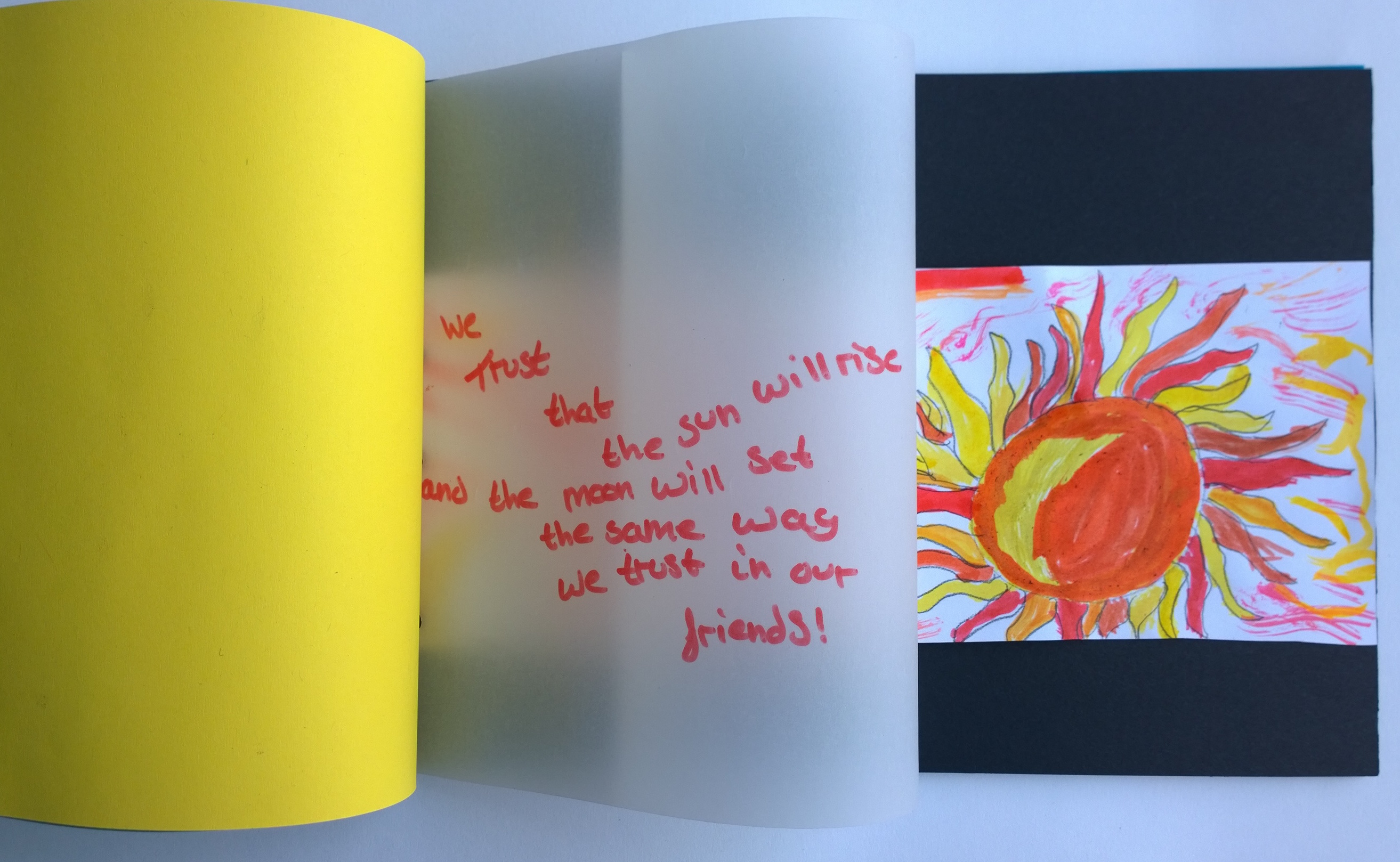 Summer project No.4 is a 4-day immersive Arts Award summer school for young carers, at the De La Warr Pavilion. We took our inspiration from the two current (excellent) exhibitions: the innovative graphic design and typographic playfulness of Willem Sandberg and printed and 3D letterforms by Peter Blake. I taught the children various styles of printing and collage, which led on to designing and making individual books about the people/objects and ideas that are most important in their lives. For the books we books used Sandberg’s approach of interleaving tracing paper and overlaying image with type.