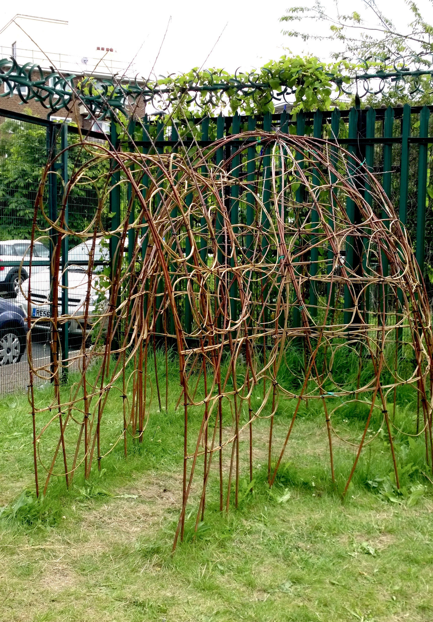 Summer project No.2 is a willow sculpture trail in the garden of Haymerle special needs school in Lambeth, in partnership with John Donne school. We experimented with design, weaving and construction in all weathers, resulting in huge structures to inhabit and play around.
