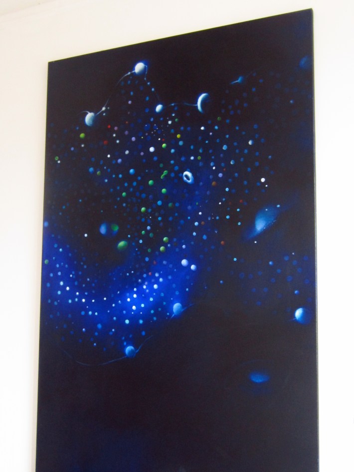 Acrylic on board. Dimensions: width 85cm x height 51cm.